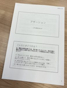 コミュニケーションの実践として「アサーション」について学び、実践していただきました。
